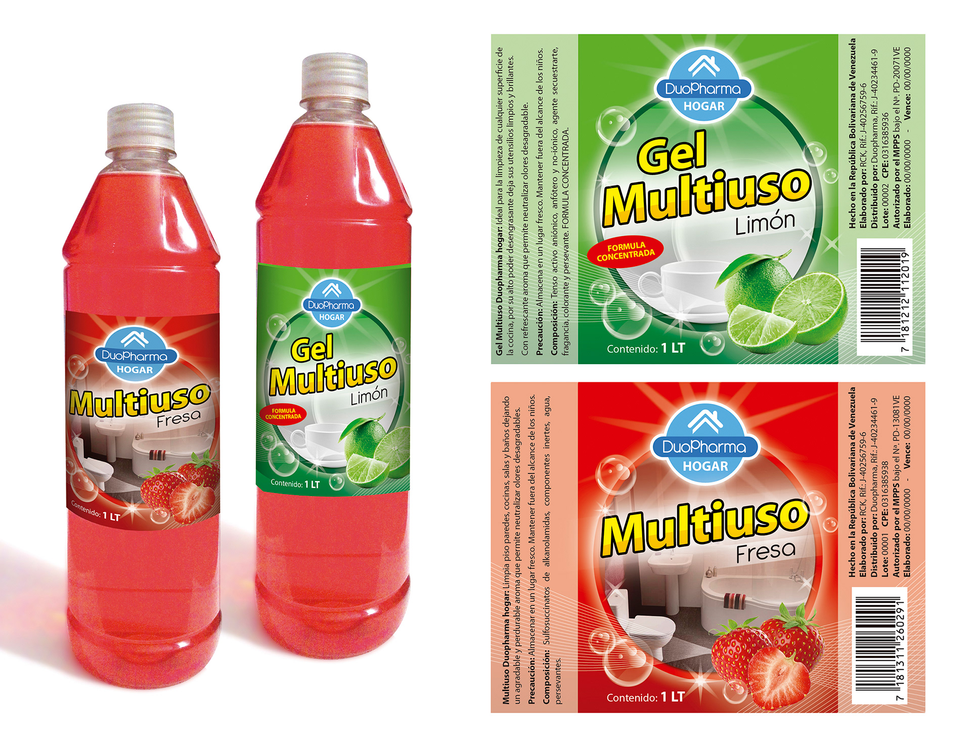 Etiqueta para productos Multiuso Fresa y Gel Multiuso Limón, de la linea de productos Duopharma Hogar