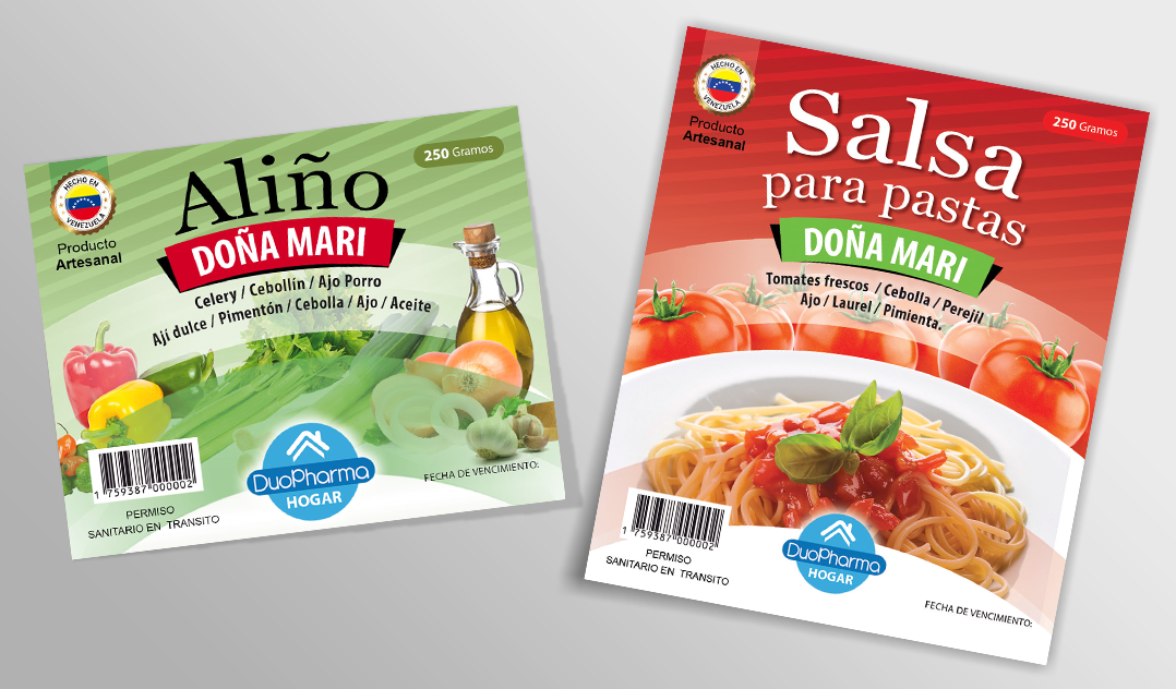 Etiquetas para productos Aliño y Salsa para pasta Doña Mari, de la linea de productos Duopharma Hogar