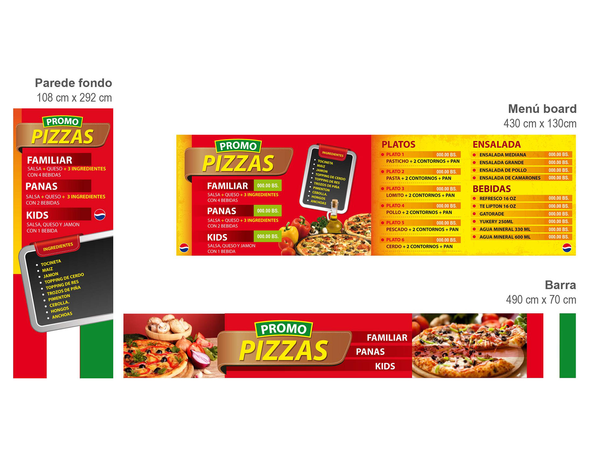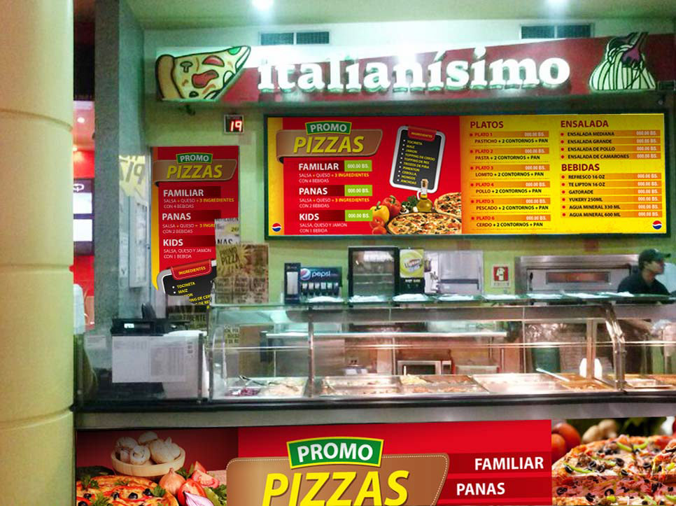 Diseño de Menú board, gráfico de pared y barra de comida para restauran de comida rápida ubicada en el C.C. Sambil de la ciudad de Barquismeto
